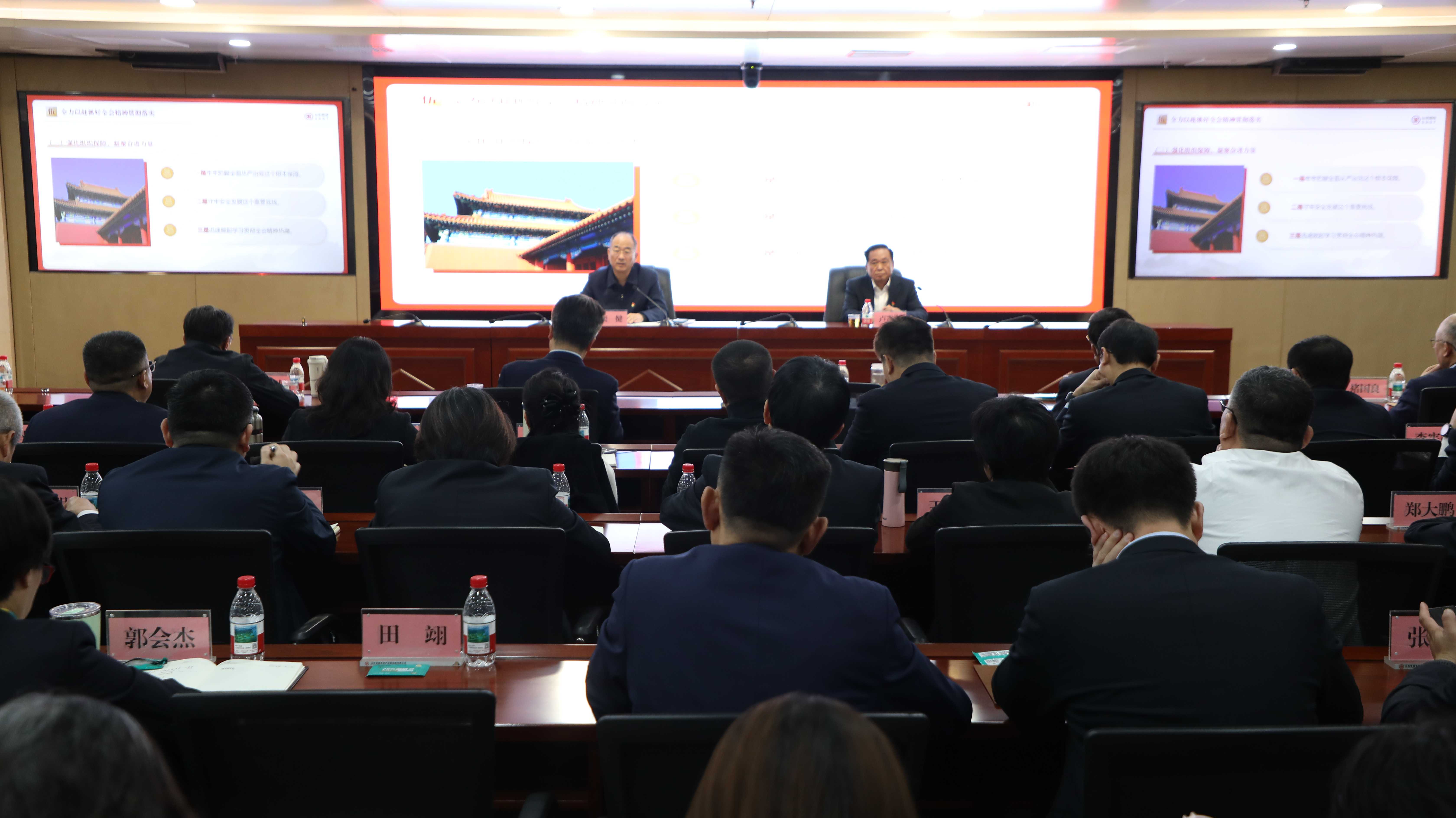 欒健強調,學習好貫徹好黨的二十屆四中全會精神,是當前和今后一個時期的一項重大政治任務。要深刻領會全會的核心要義、精神實質、豐富內(nèi)涵和實踐要求,做到學深悟透、融會貫通。一是深化思想認識,把握精神實質。要把學習貫徹全會精神同學習領會習近平新時代中國特色社會主義思想貫通起來,切實把思想和行動統(tǒng)一到黨中央決策部署上來。要牢牢把握習近平總書記對山東作出的總定位、新要求,全面對標對表黨的二十屆四中全會精神和習近平總書記考察山東重要講話精神,自覺貫徹落實到山東國投公司改革發(fā)展各項工作全過程。要牢牢把握高質量發(fā)展這個主題,高點定位,向“高”發(fā)展、向“新”而行、向“綠”發(fā)力,更好服務實體經(jīng)濟和推動產(chǎn)業(yè)轉型升級。二是聚焦重點領域,推動落地見效。要高標準做好山東國投公司“十五五”規(guī)劃編制工作,以高質量規(guī)劃引領公司高質量發(fā)展。要優(yōu)化資產(chǎn)結構和產(chǎn)業(yè)結構,不斷優(yōu)化資源配置,全力推進產(chǎn)業(yè)煥新與未來產(chǎn)業(yè)啟航行動。要強化科技創(chuàng)新與產(chǎn)業(yè)創(chuàng)新,以新質生產(chǎn)力搶占發(fā)展制高點。要深化改革提升和人才支撐,加快釋放與山東人才重組整合效應,加速降本增效和新舊動能轉換,健全中國特色國有企業(yè)現(xiàn)代公司治理機制。三是強化組織保障,凝聚奮進力量。要牢牢把握全面從嚴治黨這個根本保障,旗幟鮮明“大抓黨建、抓大黨建”,以更高質量黨建引領更高質量發(fā)展。要守牢安全發(fā)展這個重要底線,以新安全格局保障新發(fā)展格局。要迅速掀起學習貫徹黨的二十屆四中全會精神熱潮,把全會精神轉化為抓好各項工作的強大動力。
